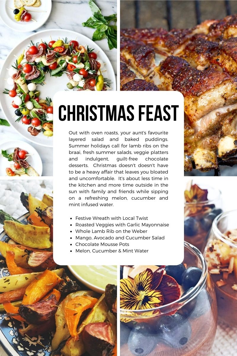 We are blessed with beautiful warm weather in the southern hemisphere and there is no need to follow holiday food trends originating from the States and Europe. Out with the oven roasts, baked puddings and eggnog and in with braai’s, salads, fruit lollies and the occasional chocolate delight.