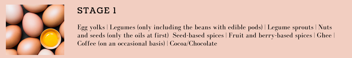 - Once you completed stage 1 reintroductions, proceed to stage 2, then stage 3 and end the reintroductions with stage 4 foods.